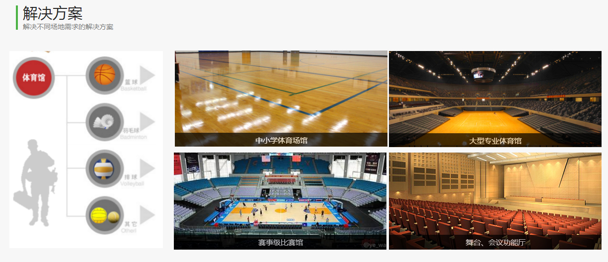 我們不僅擁有自主品牌生產專利,同時公司本著"高標準、多元化"的經營理念,應現代體育發展之需求,廣泛與國內外專業體育機構、知名運動場地材料生產廠商保持密切業務來往。美國Aacer運動木地板;河北天速PVC運動地板;韓國LG塑膠運動地板;法國Gerflor潔福運動地板等系列產品,以滿足整個體育設施市場的良性發展。